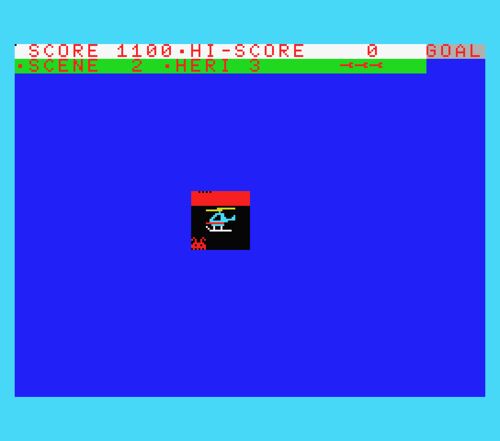 よく描けているタイトル画面。右上の黒いのが洞窟入口 歳を取ると、ゲームプログラムを入力するよりも遊ぶ方が、遊ぶよりもレビューを書く方がたいへんになってきます(おい)。というわけで本日はポプコム85年9月号より「地底探検飛行」。プログラムはだいぶ…