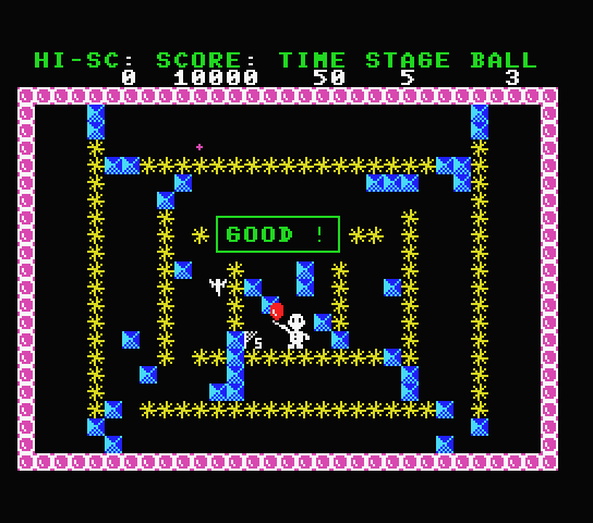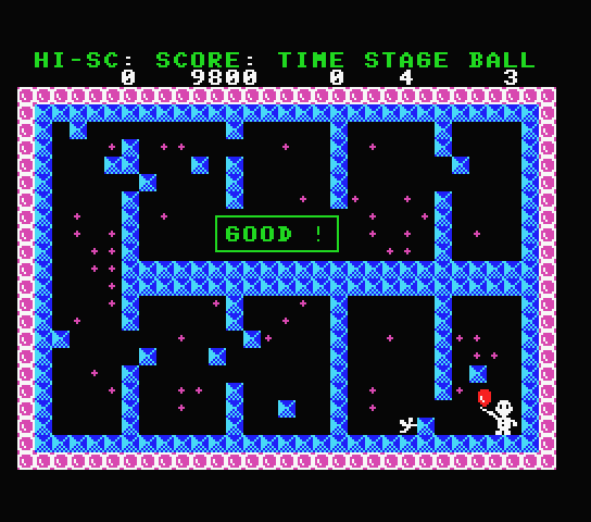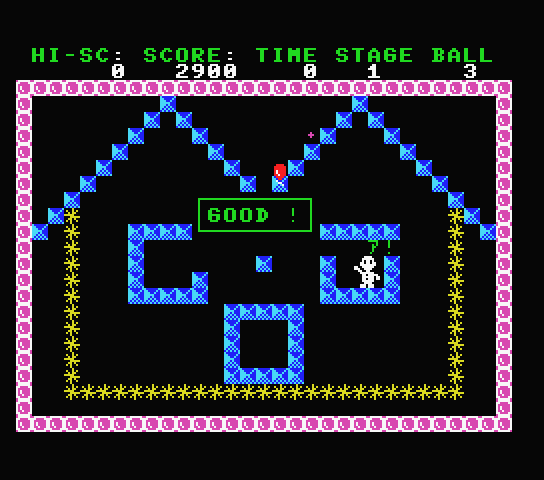 ただし、グラフィックがなかなかよくできてます。オープニングデモの風船が文字を書き換える演出は、何気ないようで目を惹きます。妖精のアニメや、ステージ終了時の風船が再び少年の手から離れるデモや、クリアボーナス加算時のスコア表示処理等、演出には気を遣って作られています。
